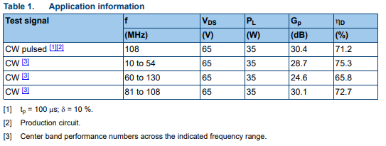 高擊穿電壓使 E 類操作電壓高達 VDS= 53 伏